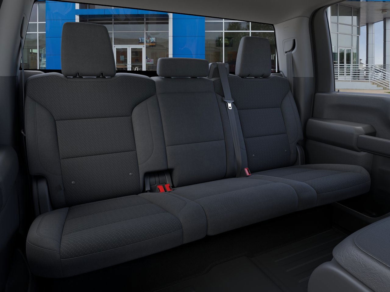 - Seat, rear 60/40 folding bench (folds up) 3-passenger, (includes child seat top tether anchor) (Requires Crew Cab model.)