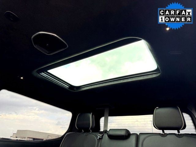 The Obsidian Appearance Package and Two-Tone Paint Group lend an air of elegance and sophistication to the exterior, with the Gloss Black upper and lower trim and Piano Black accents creating a striking contrast against the bold Black paint. The power moonroof and adjustable roof rail crossbars further enhance the Grand Wagoneer's versatility and style.