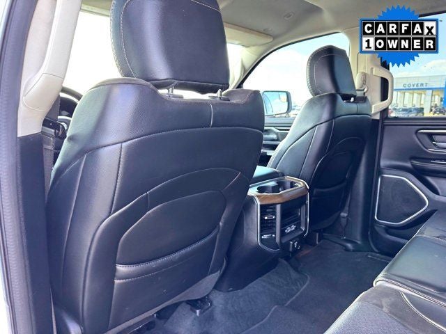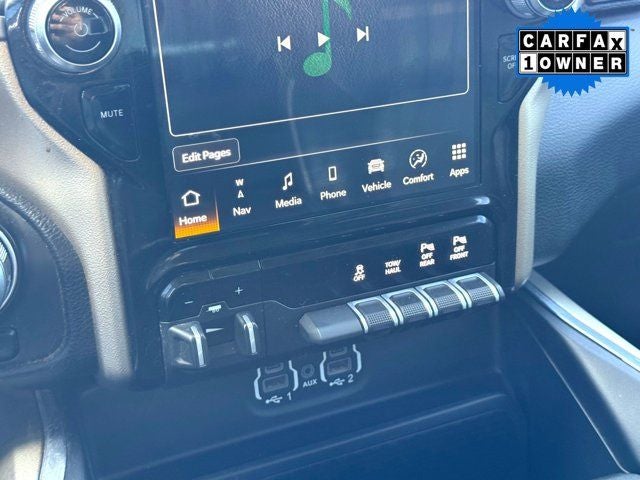 4WD, BLIND SPOT MONITORING, CLEAN CARFAX, COOLED SEATS, HEATED SEATS, LEATHER, LOCAL TRADE, NAVIGATION, ONE OWNER, #1 Seat Foam Cushion, 12 Touchscreen Display, 2nd Row In Floor Storage Bins, 3 Rear Seat Head Restraints, 4 Way Front Headrests, 4-Wheel Disc Brakes, 48V Belt Starter Generator, 4G LTE Wi-Fi Hot Spot, ABS brakes, Adjustable pedals, Air Conditioning, All Plant-Installed Decals, All R1 High Radios, All Radio Equipped Vehicles, Apple CarPlay, Apple CarPlay/Android Auto, Auto High Beam Headlamp Control, Auto-dimming door mirrors, Auto-Dimming Exterior Driver Mirror, Auto-dimming Rear-View mirror, Automatic temperature control, Bed Utility Group, Blind Spot & Cross Path Detection, Brake assist, Bumpers: chrome, Chrome Exterior Mirrors, Compass, Connected Travel & Traffic Services, Connectivity - US/Canada, Convex Wide-Angle Mirror Insert, Delay-off headlights, Disassociated Touchscreen Display, Driver door bin, Driver Seat Memory, Driver vanity mirror, Dual front impact airbags, E-Locker Rear Axle, Electronic Stability Control, Exterior Mirrors Courtesy Lamps, Exterior Mirrors w/Heating Element, Exterior Mirrors w/Memory, Exterior Mirrors w/Supplemental Signals, Foam Bottle Insert (Door Trim Panel), For Details, Visit DriveUconnect.com, For More Info, Call 800-643-2112, Front anti-roll bar, Front Center Armrest w/Storage, Front dual zone A/C, Front Extra HD Shock Absorbers, Front fog lights, Front License Plate Bracket, Front reading lights, Front Seat Back Map Pockets, Front wheel independent suspension, Fully automatic headlights, Garage door transmitter, Global Telematics Box Module (TBM), Google Android Auto, GPS Antenna Input, GPS Navigation, HD Radio, Heated door mirrors, Heated Front Seats, Heated front seats, Heated Steering Wheel, Heated steering wheel, Hill Descent Control, Illuminated entry, Integrated Center Stack Radio, Integrated Voice Command w/Bluetooth®, Laramie Level I Equipment Group, Leather steering wheel, Low tire pressure warning, Memory seat, MOPAR 4 Adjustable Cargo Tie-Down Hooks, MOPAR Front & Rear Rubber Floor Mats, MOPAR Spray In Bedliner, Occupant sensing airbag, Off Road Decals, Off Road Group, Off-Road Information Pages, Outside temperature display, Overhead airbag, Overhead console, Panic alarm, ParkSense Front/Rear Park Assist w/Stop, ParkView Rear Back-Up Camera, Passenger door bin, Passenger vanity mirror, Pedal memory, Pick-Up Box Lighting, Power 2-Way Driver Lumbar Adjust, Power 2-Way Passenger Lumbar Adjust, Power 8-Way Driver & Passenger Seats, Power door mirrors, Power driver seat, Power passenger seat, Power steering, Power windows, Power-Folding Mirrors, Quick Order Package 25H Laramie, Radio: Uconnect 5 Nav w/12.0 Display, Rain Sensitive Windshield Wipers, Raised Ride Height, Rear 60/40 Folding Seat, Rear anti-roll bar, Rear Extra HD Shock Absorbers, Rear seat center armrest, Rear step bumper, Rear window defroster, Remote keyless entry, Remote Tailgate Release, Security system, SiriusXM Radio Service, SiriusXM w/360L, Speed control, Split folding rear seat, Steering wheel mounted audio controls, Tachometer, Telescoping steering wheel, Tilt steering wheel, Tow Hooks, Traction control, Trailer Brake Control, Trip computer, Turn signal indicator mirrors, USB Host Flip, Ventilated Front Seats, Ventilated front seats, Voltmeter, Wheel to Wheel Side Steps, Wheels: 20 x 9 Premium Paint/Polished.