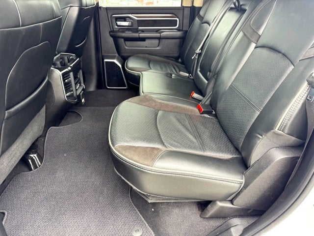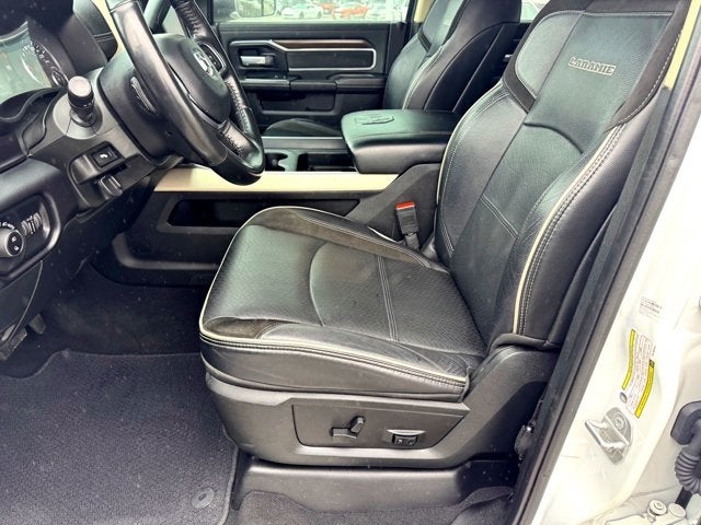 4WD, BLIND SPOT MONITORING, CLEAN CARFAX, COOLED SEATS, HEATED SEATS, LEATHER, LOCAL TRADE, NAVIGATION, 115V Auxiliary Rear Power Outlet, 2 Way Rear Headrest Seat, 220 Amp Alternator, 3.73 Axle Ratio, 4 Way Front Headrests, 4-Wheel Disc Brakes, 4G LTE Wi-Fi Hot Spot, 8.4 Touchscreen Display, ABS brakes, Adjustable pedals, Air Conditioning, Alexa Built-In, All R1 High Radios, All Radio Equipped Vehicles, Anti-Spin Differential Rear Axle, Apple CarPlay, Apple CarPlay/Android Auto, Auto-dimming Rear-View mirror, Automatic temperature control, Bluetooth® Handsfree Phone & Audio, Brake assist, Bumpers: chrome, Chrome Exterior Mirrors, Compass, Connected Travel & Traffic Services, Connectivity - US/Canada, Delay-off headlights, Disassociated Touchscreen Display, Driver door bin, Driver vanity mirror, Dual front impact airbags, Dual front side impact airbags, Electronic Stability Control, Electronically Controlled Throttle, Exterior Mirrors Courtesy Lamps, Exterior Mirrors w/Heating Element, Exterior Mirrors w/Supplemental Signals, For Details, Visit DriveUconnect.com, For More Info, Call 800-643-2112, Front anti-roll bar, Front Center Armrest w/Storage, Front fog lights, Front License Plate Bracket, Front reading lights, Front Seat Back Map Pockets, Fully automatic headlights, Garage door transmitter, Global Telematics Box Module (TBM), Google Android Auto, GPS Antenna Input, GPS Navigation, HD Radio, Heated door mirrors, Heated Front Seats, Heated front seats, Heated Steering Wheel, Heated steering wheel, Illuminated entry, Integrated Center Stack Radio, Integrated Voice Command w/Bluetooth®, Leather steering wheel, Leather Trim 40/20/40 Bench Seat, Low tire pressure warning, Mirror Running Lights, Occupant sensing airbag, Off-Road Information Pages, Outside temperature display, Overhead airbag, Overhead console, Panic alarm, ParkView Rear Back-Up Camera, Passenger door bin, Passenger vanity mirror, Power 2-Way Driver Lumbar Adjust, Power 2-Way Passenger Lumbar Adjust, Power Adjust 8-Way Driver Seat, Power Adjust 8-Way Front Passenger Seat, Power door mirrors, Power driver seat, Power Folding Mirrors, Power passenger seat, Power steering, Power windows, Quick Order Package 2HH Laramie, Radio: Uconnect 5 Nav w/8.4 Display, Rear 60/40 Folding Seat, Rear anti-roll bar, Rear reading lights, Rear seat center armrest, Rear step bumper, Remote keyless entry, Security system, Selectable Tire Fill Alert, SiriusXM Radio Service, SiriusXM w/360L, Speed control, Split folding rear seat, Steering wheel mounted audio controls, Tachometer, Tilt steering wheel, Tip Start, Tow Hooks, Traction control, Trailer Tow Mirrors, Trip computer, Turn signal indicator mirrors, Vendor Painted Cargo Box, Vendor Painted Cargo Box Tracking, Voltmeter.
