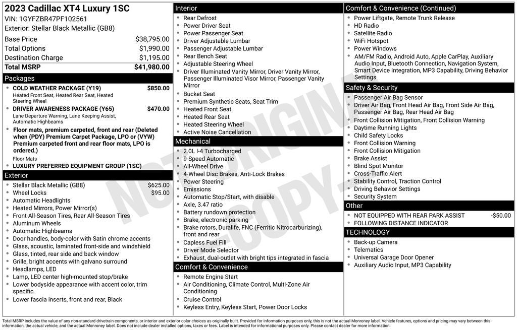 This 2023 Cadillac XT4 Luxury is a true testament to the brand's commitment to craftsmanship, technology, and driving excellence. Experience the difference for yourself and schedule a test drive today. We're confident you'll be impressed by the exceptional value and refined capabilities of this exceptional SUV.