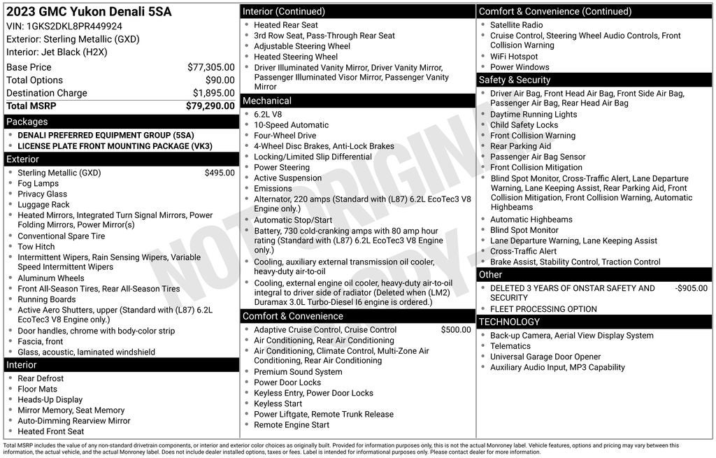 - Deleted 3 Years of OnStar Safety & Security