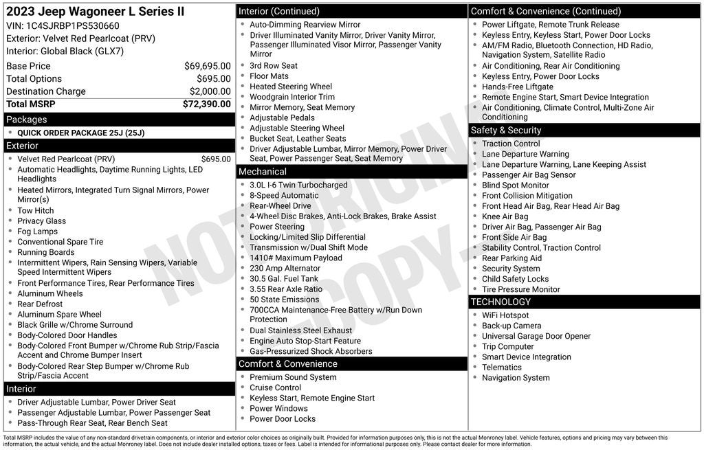 This impressive 2023 Jeep Wagoneer L Series II is a true standout in its class. With its striking Velvet Red Pearlcoat exterior and a wealth of premium features, this SUV is ready to elevate your driving experience.