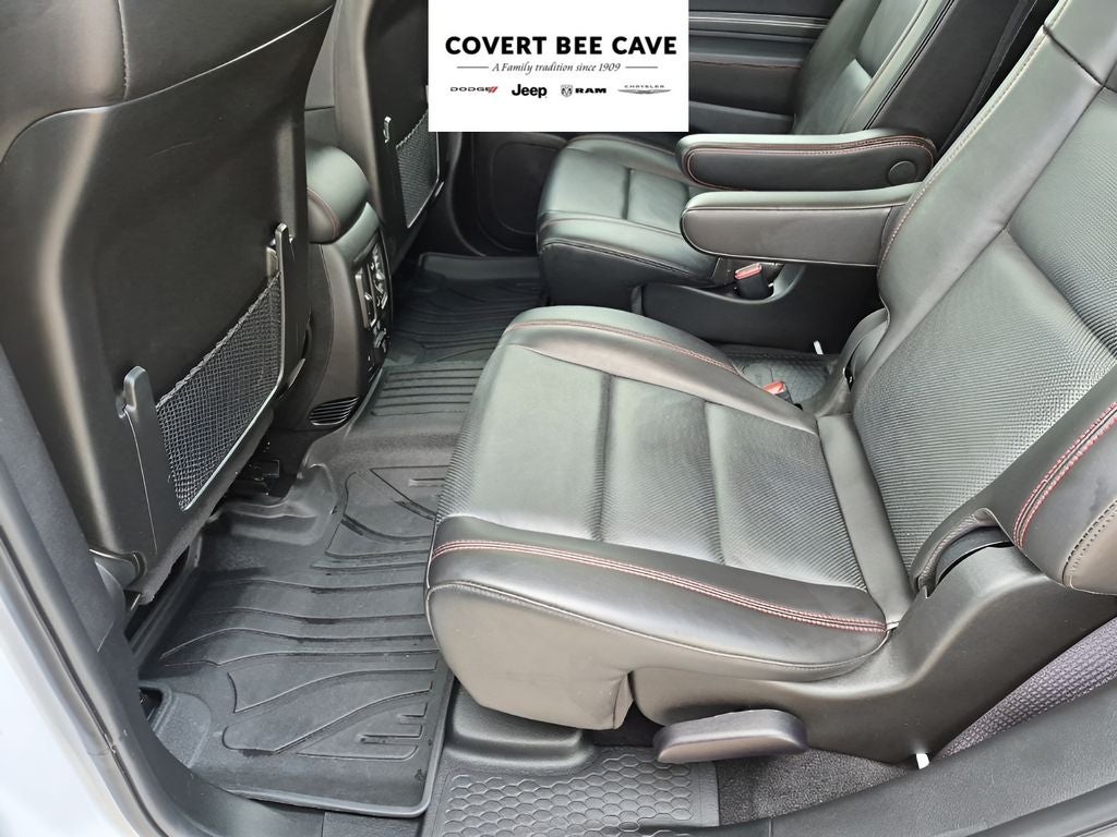 This Durango's impressive capabilities are further enhanced by its Quick Order Package 22T R/T Plus, which includes a Class IV receiver hitch, trailer brake control, and an integrated roof rail crossbar system. The 2nd Row Fold/Tumble Captain Chairs provide versatile seating options, allowing you to accommodate both passengers and cargo with ease.