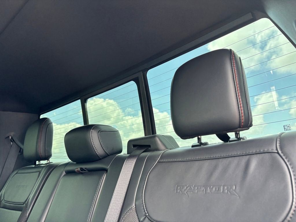 This truck’s Equipment Group 802A Raptor 37 package bundles sought-after amenities: heated and ventilated front seats, heated rear seats, memory functions for seating and pedals, premium audio, navigation, rain-sensing wipers, heads-up display, and a spray-in Tough Bed liner. Features like the heated steering wheel, dual-zone climate, and advanced connectivity transform every drive into a comfortable, connected experience, with all-weather readiness built in from the outset.