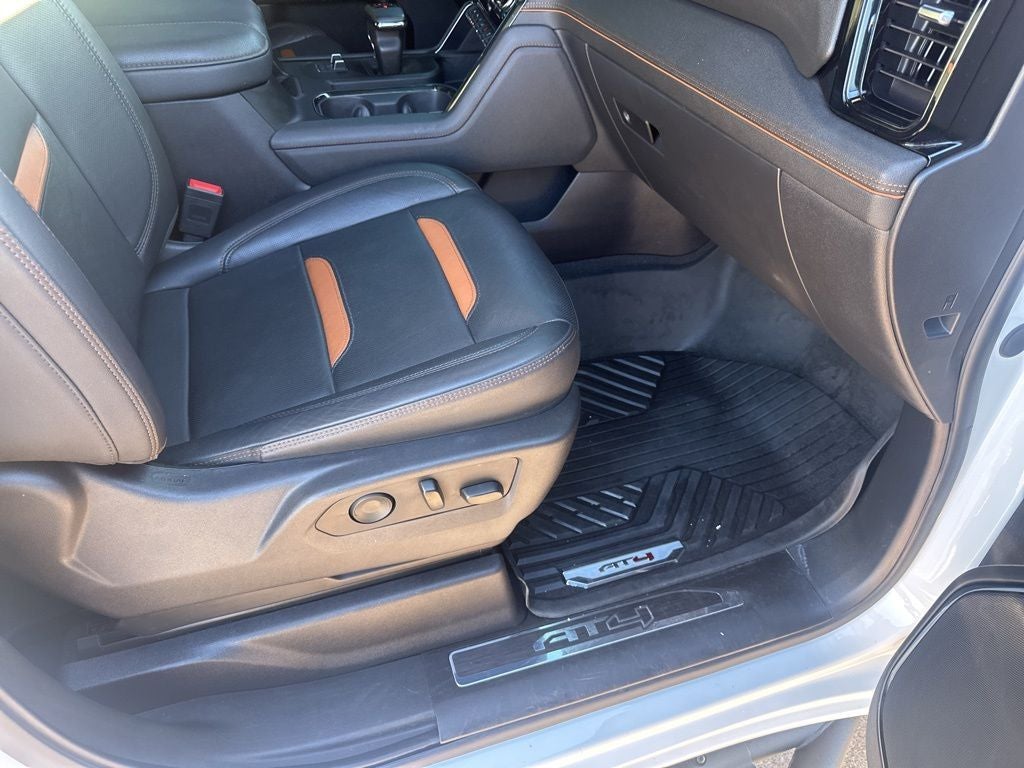 The Sierra AT4's interior is a true sanctuary of comfort and refinement. Heated and ventilated front seats, a heated steering wheel, and a panoramic sunroof create an unparalleled driving environment. The Multicolor 15 Head-Up Display and Rear Camera Mirror provide enhanced visibility and convenience, while the Trailer Camera Provisions and Integrated Trailer Brake Controller make towing a breeze.