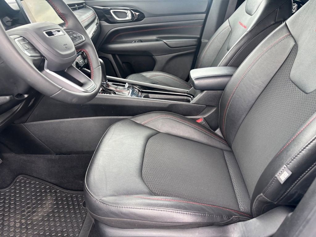 Hydro Blue Pearlcoat, Ruby Red/Black Cloth, 10.1 Touchscreen Display, 4-Wheel Disc Brakes, 4.398 Final Drive Ratio, 6 Speakers, ABS brakes, Air Conditioning, Alloy wheels, AM/FM radio: SiriusXM, Apple CarPlay/Android Auto, Auto High-beam Headlights, Auto-dimming Rear-View mirror, Automatic temperature control, Brake assist, Bumpers: body-color, Compass, Delay-off headlights, Driver door bin, Driver vanity mirror, Dual front impact airbags, Dual front side impact airbags, Electronic Stability Control, Emergency communication system: Jeep Connect, Four wheel independent suspension, Front anti-roll bar, Front Bucket Seats, Front Center Armrest w/Storage, Front dual zone A/C, Front fog lights, Front License Plate Bracket, Front reading lights, Fully automatic headlights, Heated door mirrors, Illuminated entry, Knee airbag, Leather Shift Knob, Leather steering wheel, Low tire pressure warning, Occupant sensing airbag, Outside temperature display, Overhead airbag, Overhead console, Panic alarm, ParkView Rear Back-Up Camera, Passenger door bin, Passenger vanity mirror, Power door mirrors, Power steering, Power windows, Premium audio system: UConnect 5, Premium Cloth/Leather Trim Bucket Seats, Quick Order Package 29E, Radio: Uconnect 5 w/10.1 Display, Rain sensing wipers, Rear anti-roll bar, Rear seat center armrest, Rear window defroster, Rear window wiper, Remote keyless entry, Security system, Speed control, Split folding rear seat, Spoiler, Steering wheel mounted audio controls, Tachometer, Telescoping steering wheel, Tilt steering wheel, Traction control, Trip computer, Turn signal indicator mirrors, Variably intermittent wipers, Wheels: 17 x 6.5 Painted Black Aluminum, Hydro Blue Pearlcoat, Ruby Red/Black Cloth, 10.1 Touchscreen Display, 4-Wheel Disc Brakes, 4.398 Final Drive Ratio, 6 Speakers, ABS brakes, Air Conditioning, Alloy wheels, AM/FM radio: SiriusXM, Apple CarPlay/Android Auto, Auto High-beam Headlights, Auto-dimming Rear-View mirror, Automatic temperature control, Brake assist, Bumpers: body-color, Compass, Delay-off headlights, Driver door bin, Driver vanity mirror, Dual front impact airbags, Dual front side impact airbags, Electronic Stability Control, Emergency communication system: Jeep Connect, Four wheel independent suspension, Front anti-roll bar, Front Bucket Seats, Front Center Armrest w/Storage, Front dual zone A/C, Front fog lights, Front License Plate Bracket, Front reading lights, Fully automatic headlights, Heated door mirrors, Illuminated entry, Knee airbag, Leather Shift Knob, Leather steering wheel, Low tire pressure warning, Occupant sensing airbag, Outside temperature display, Overhead airbag, Overhead console, Panic alarm, ParkView Rear Back-Up Camera, Passenger door bin, Passenger vanity mirror, Power door mirrors, Power steering, Power windows, Premium audio system: UConnect 5, Premium Cloth/Leather Trim Bucket Seats, Quick Order Package 29E, Radio: Uconnect 5 w/10.1 Display, Rain sensing wipers, Rear anti-roll bar, Rear seat center armrest, Rear window defroster, Rear window wiper, Remote keyless entry, Security system, Speed control, Split folding rear seat, Spoiler, Steering wheel mounted audio controls, Tachometer, Telescoping steering wheel, Tilt steering wheel, Traction control, Trip computer, Turn signal indicator mirrors, Variably intermittent wipers, Wheels: 17 x 6.5 Painted Black Aluminum. CARFAX One-Owner. Hydro Blue Pearlcoat 2025 Jeep Compass Trailhawk 4WD 8-Speed Automatic 2.0L I4 DOHCRecent Arrival! 24/32 City/Highway MPG